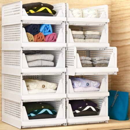 No more digging through piles of clothes or hunting for missing socks. Instead, these stackable organisers give you a simple, space-saving solution. They keep your clothes, towels, and accessories neatly stored and easy to reach. In addition, the modular design lets you stack them vertically or place them side by side, depending on your wardrobe layout. Therefore, whether you have a small closet or a larger space, this organiser set adapts to your needs. Overall, it’s the perfect storage system for any home.